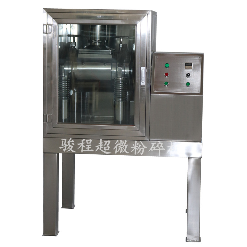 濟南駿程小型超微研磨機主要應用于高校實驗室、小試生產以及名貴中藥的生產,每次裝料量是1.2L,可以選用220伏或380伏電壓,功率是1.1kw。手動翻轉式工作,限位裝置采用的是雙螺旋式,定位準確、操作簡便。設備磨腔設有冷卻閉路循環系統,配置冷凍機,粉體出料溫度不高于10℃。有利于保留不耐高溫的生物活性成分及各種營養成分。設備按GMP設計,與物料接觸部位為符合藥品、食品標準要求的304不銹鋼制作,配有低噪音不銹鋼隔音罩,全密閉作業,無粉塵污染、無物料損耗。對于纖維狀、高韌性、高強度、遇熱發粘的物料都可以粉碎至細胞級微粉。