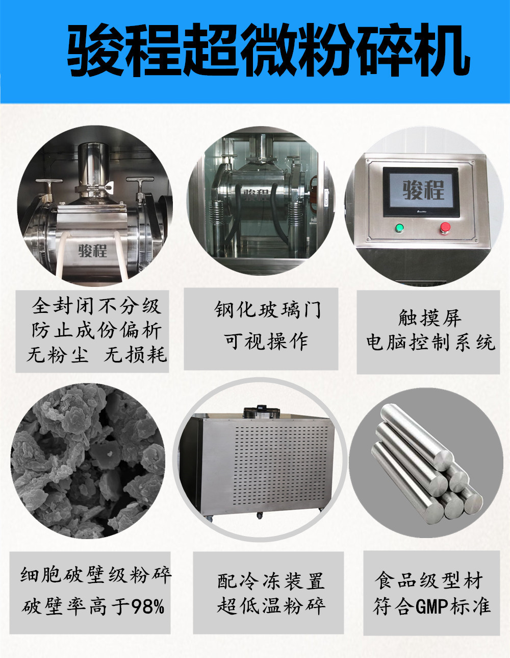 駿程丹參低溫粉碎機符合GMP認證標準,材質為醫藥食品機械通用材質。細度和功能優于其他類粉碎設備,功能強大、美觀整潔、與眾不同。設備具有連續運轉的安全可靠性,使用壽命長、無報廢期。