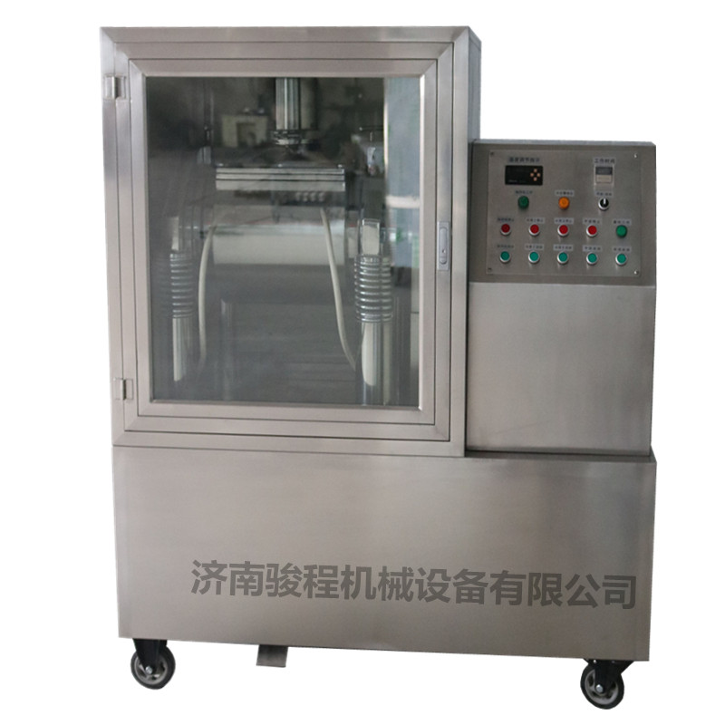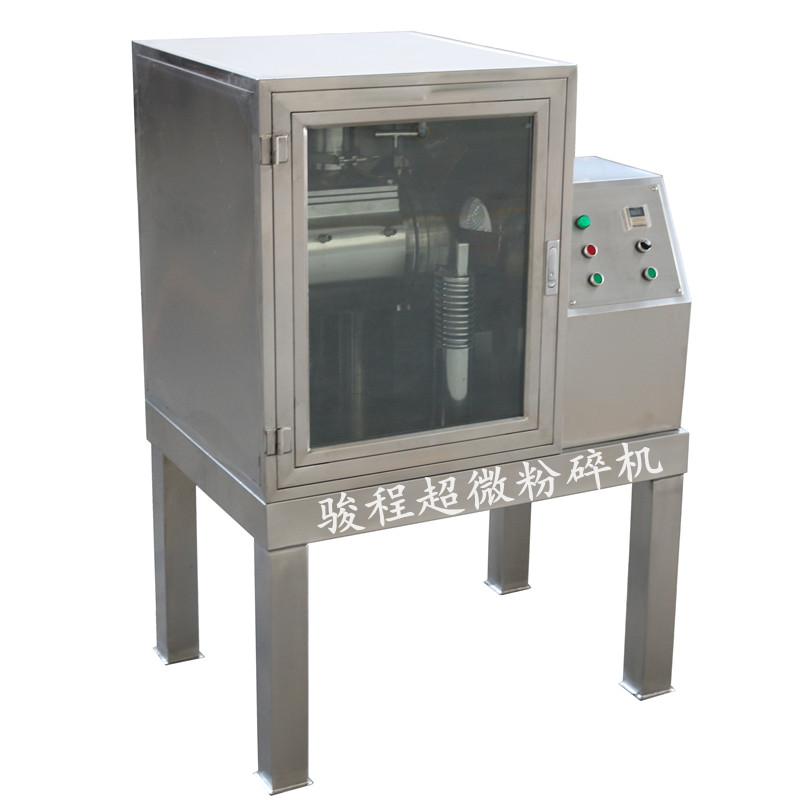駿程小型低溫粉碎機在制造工藝上配置制冷機,在低溫狀態下進行粉碎,粉碎過程無過熱現象,可使升溫后軟化或發粘的藥物易于粉碎。中藥中一些含油性、粘液質、多糖等成分較多的種子、果實和花類。如枸杞子、生熟地、柏子仁等。采用普通粉碎機,粉碎過程會產生大量的熱使物料升溫生物活性物料中的熱敏性物質與生物活性物質會因粉碎過程中的升溫過高失活或損失,令熱敏性物料的性能指標降低或大部分失效。粉碎過程中也會引起物料的變性或變質,如果這種變性不是我們需要的,將會導致廢品率升高。粉碎過程中物料承受的機械力并隨之大部分變為熱能會加熱物料,其加熱時間、物料種類與含水量、環境溫度與濕度、要求達到產品的細度以及粉碎工藝參數等等,都會影響生物活性物料超細粉碎產品的質量 。駿程小型低溫粉碎機在粉碎時可根據要求,通過向磨筒套內通入冷卻水或配置制冷機來控制粉碎溫度。在粉碎原料達到常溫、粉碎機內部為低溫情況下粉碎,物料與粉碎機內部均呈低溫狀態。中藥材在低溫下其韌性出現均勻地降低,各部位由于不均勻收縮而產生內應力,易引起薄弱部位破裂和龜裂,導致物料內部組織結合力降低,當受到一定的沖擊時,極易破碎成細粉。對于纖維狀、高韌性、高強度、含油率高、含糖量高的物料都可以達到超微粉碎。