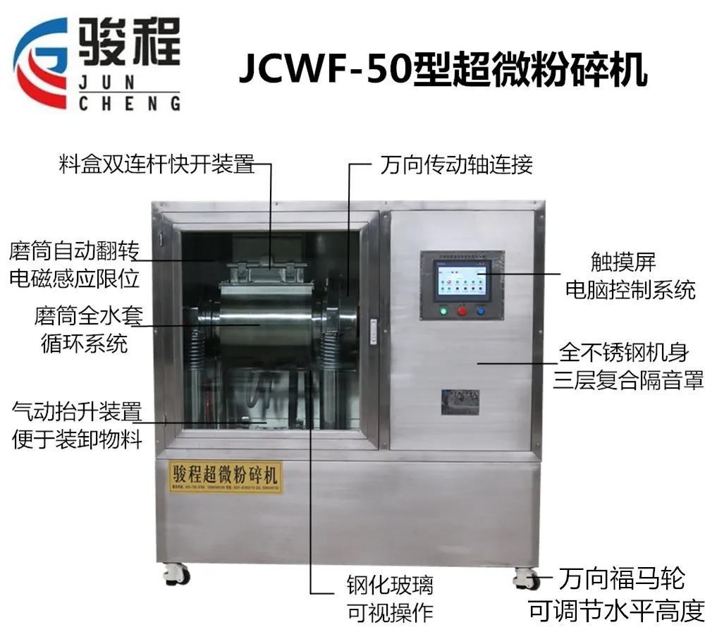 超微粉碎機的小型、中型設備均有腳踏式頂升裝置,便于裝卸料。大型超微粉碎機采用氣動式抬升裝置,簡單易操作。中型、大型超微粉碎機均為全水套制冷系統(tǒng),內外和側面都有制冷循環(huán)水套,制冷效果更好。小型、中型超微粉碎機之前都是皮帶式軟連接,駿程超微粉碎機升級為傳動軸式連接,振幅基本保持不變、振動頻率穩(wěn)定,粉碎效果均勻。隨著客戶對產品的要求越來越高,我們可以根據(jù)客戶要求定制不同材質、不同型號、不同規(guī)格的超微粉碎機。